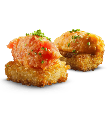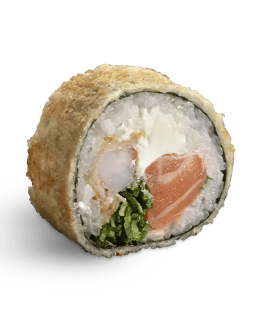 Camarón furai, Salmón, Queso crema y Cebollín, envuelto en nori tempurizado.